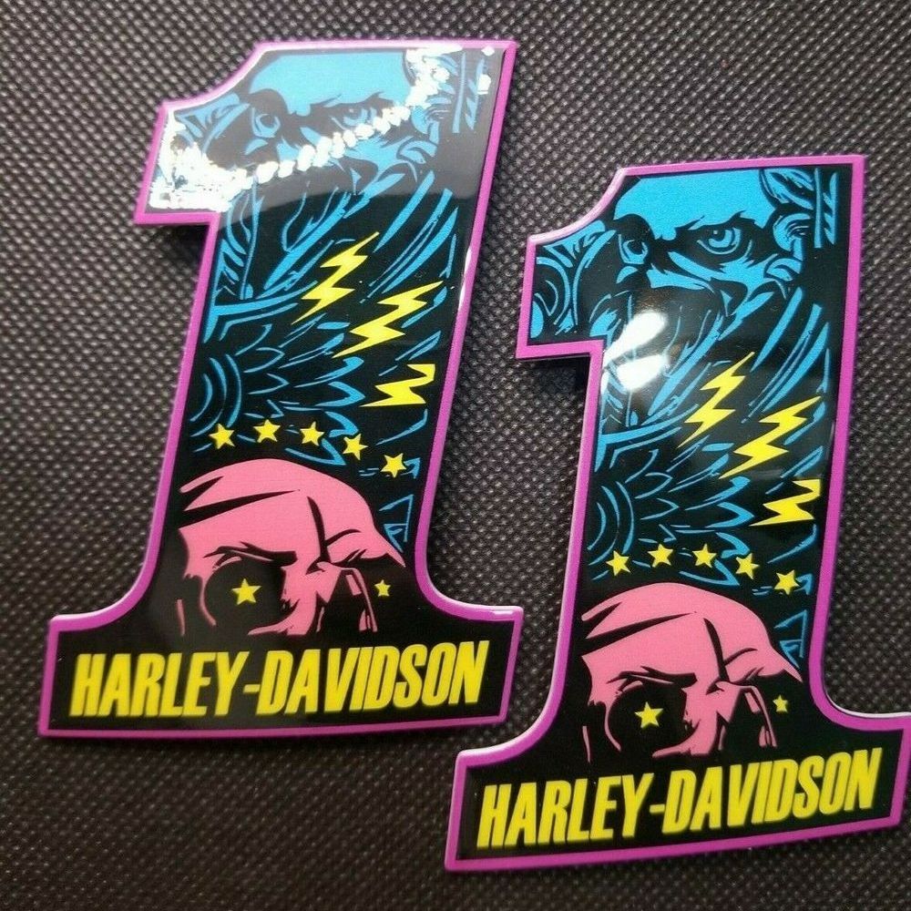 Get set of custom #1 Eagle black-pink-blue tank emblems for Harley Davidson. Not OEM cvo tank badge. Lowest Prices! Order Now!