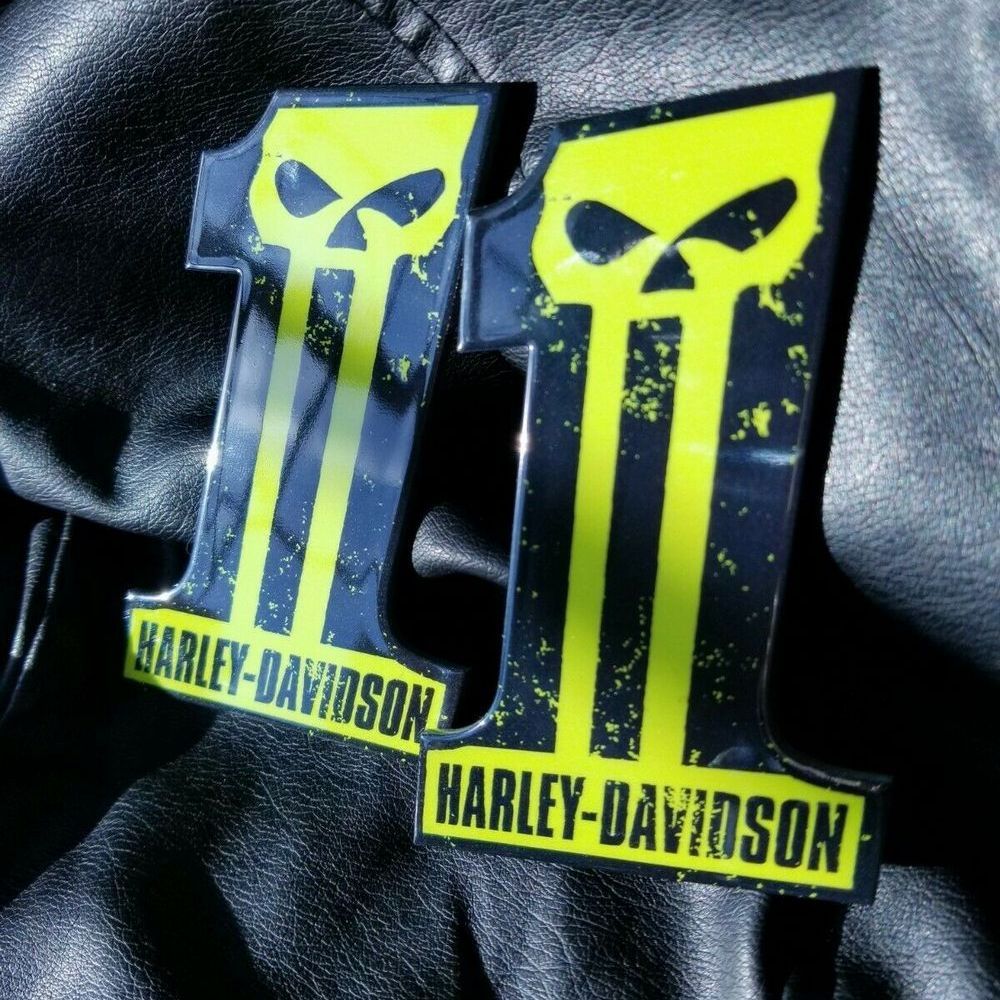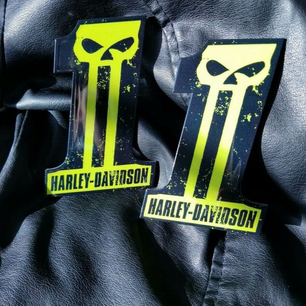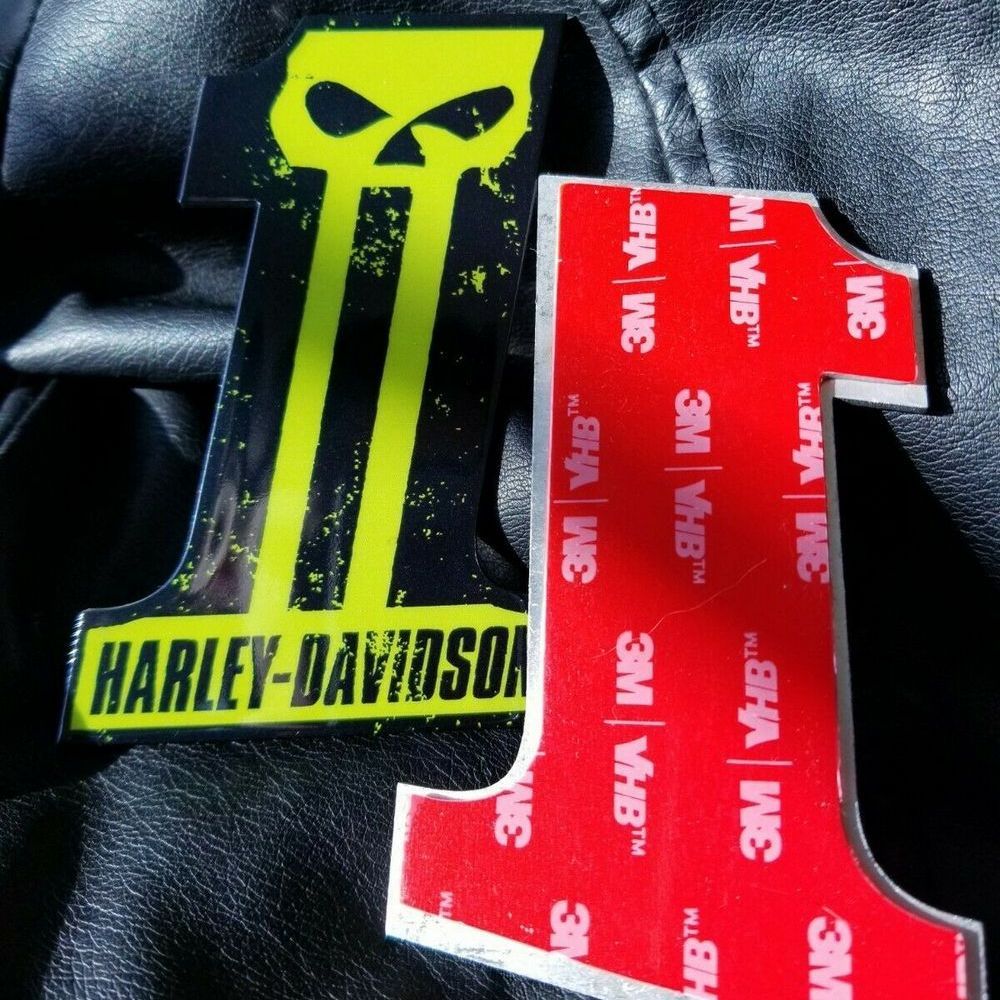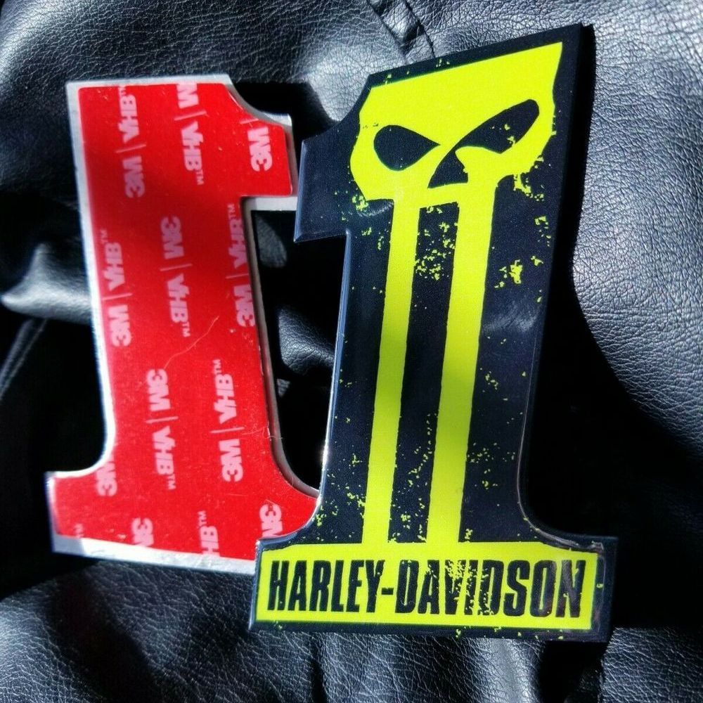 Get set of custom #1 Punisher black-green tank emblems for Harley Davidson. Not OEM cvo tank badge. Lowest Prices! Order Now!
