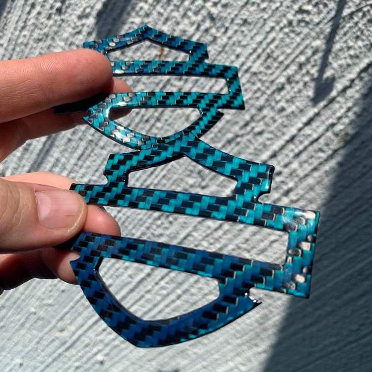 Get set of custom Blue carbon with blue edges tank emblems for Harley Davidson. Not OEM cvo tank badge. Lowest Prices! Order Now!